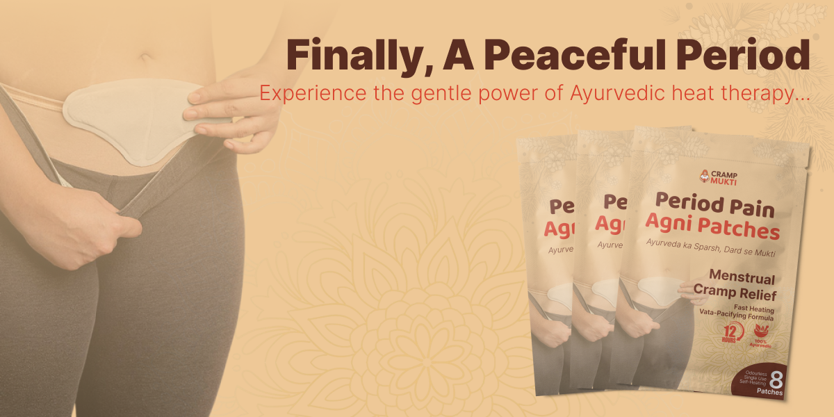 At Cramp Mukti, our commitment is to authenticity and purity. We understand that menstrual pain, according to ancient Ayurvedic texts (Shastra), is often caused by an imbalance of Vata Dosha. Our products are not just heat patches; they are carefully formulated solutions based on this principle. Every Agni Patch is a result of deep research into herbal science, designed to provide therapeutic warmth that pacifies Vata and restores your body's natural harmony.